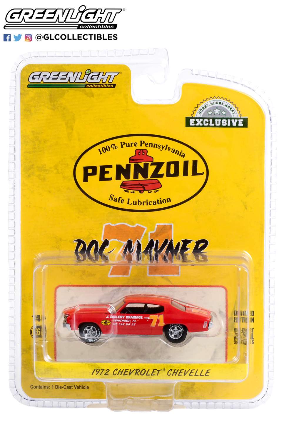 1:64 Doc Mayner's 1972 Chevrolet Chevelle #71 - J. Gallery Drainage Winthrop, IA - Pennzoil