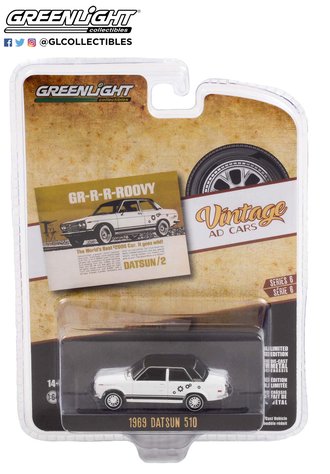 1:64 Vintage Ad Cars Series 6 - 1969 Datsun 510 "GR-R-R-ROOVY - The World's Best $2000 Car"