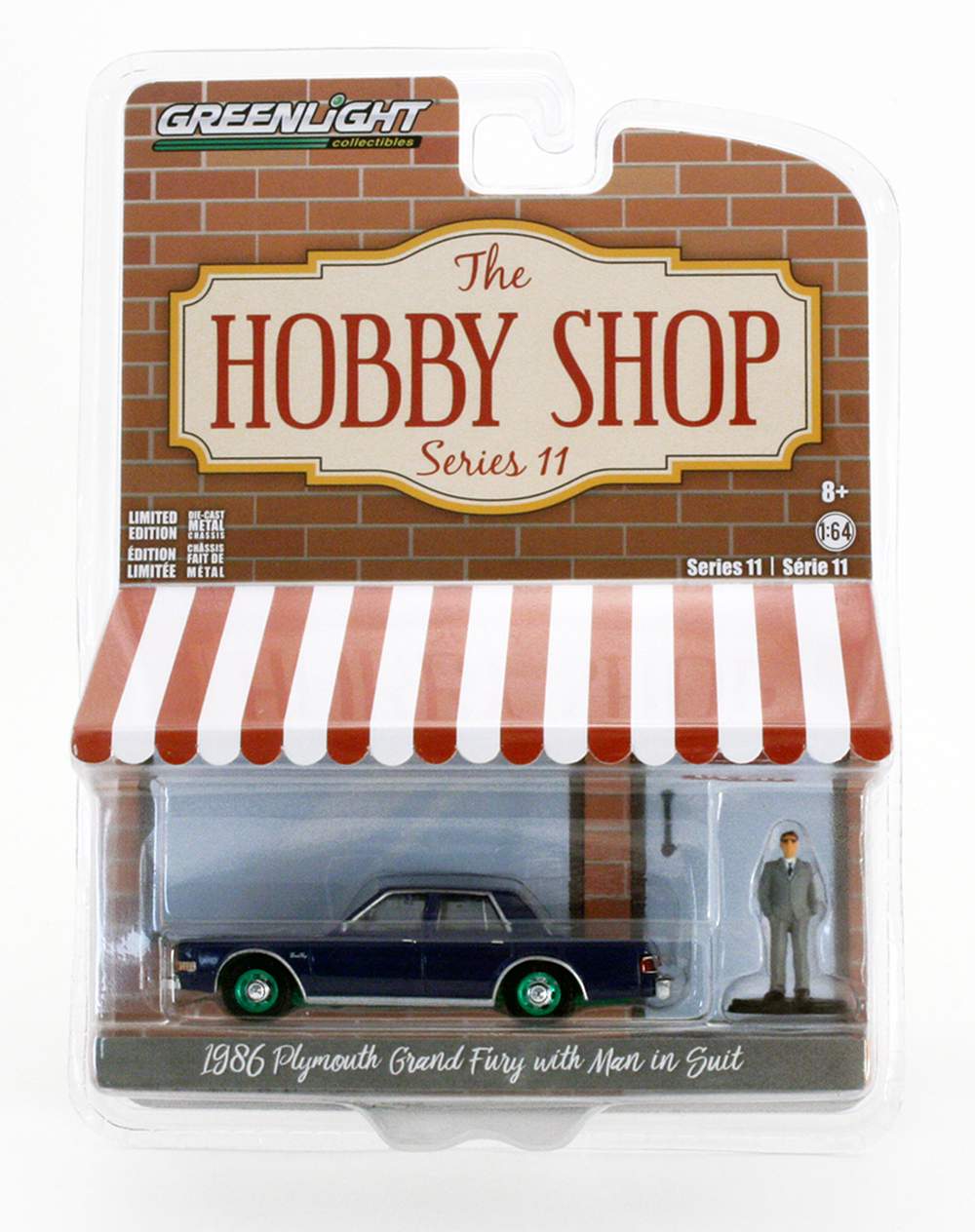 Chase 1:64 The Hobby Shop Series - 1986 Plymouth Grand Fury Unmarked Police Car w/Man - Navy Blue