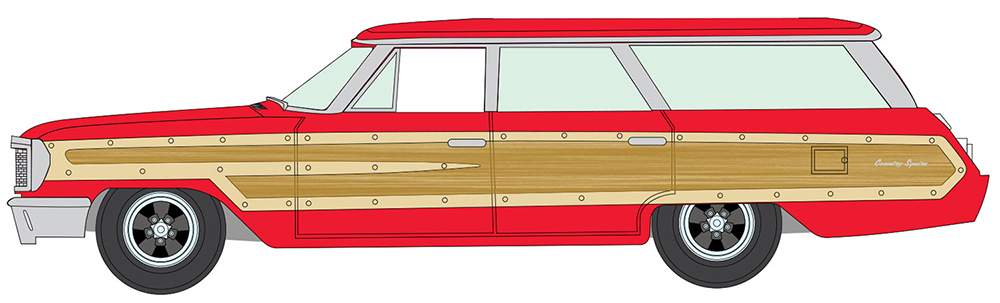 1:64 1964 Ford Country Squire (Poppy Red w/Honey-Colored Wood Trim)