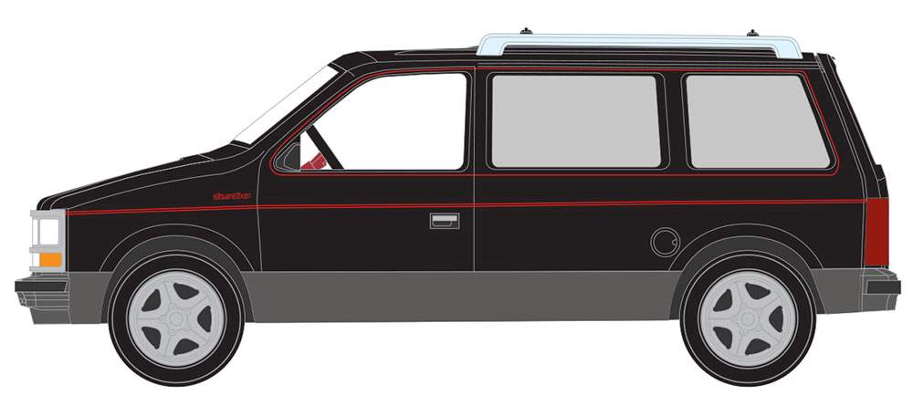 1:64 1989 Dodge Caravan Turbo (Black w/Dark Quartz Gray Lower & Red Pin Stripe)