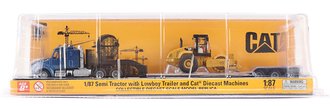 1:87 Kenworth T880 Tractor w/Lowboy Trailer & CAT Padfoot Roller (Blue)