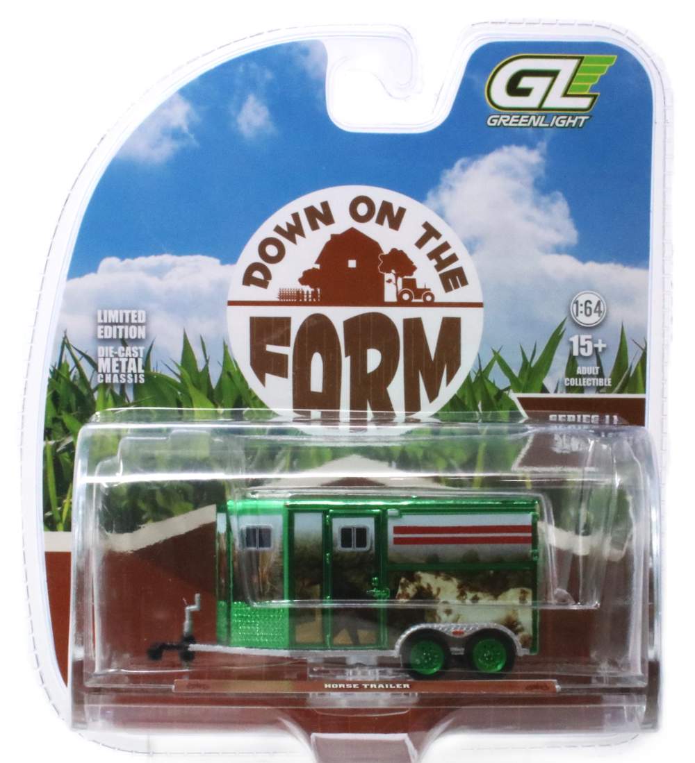 Super Chase 1:64 Horse Trailer (Custom Horse Wrap) ***Green Chrome***
