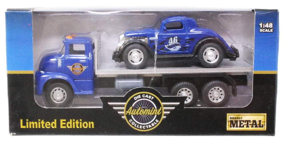 1:48 GMC C.O.E Ramp Truck w/Custom Hot Rod (Blue)